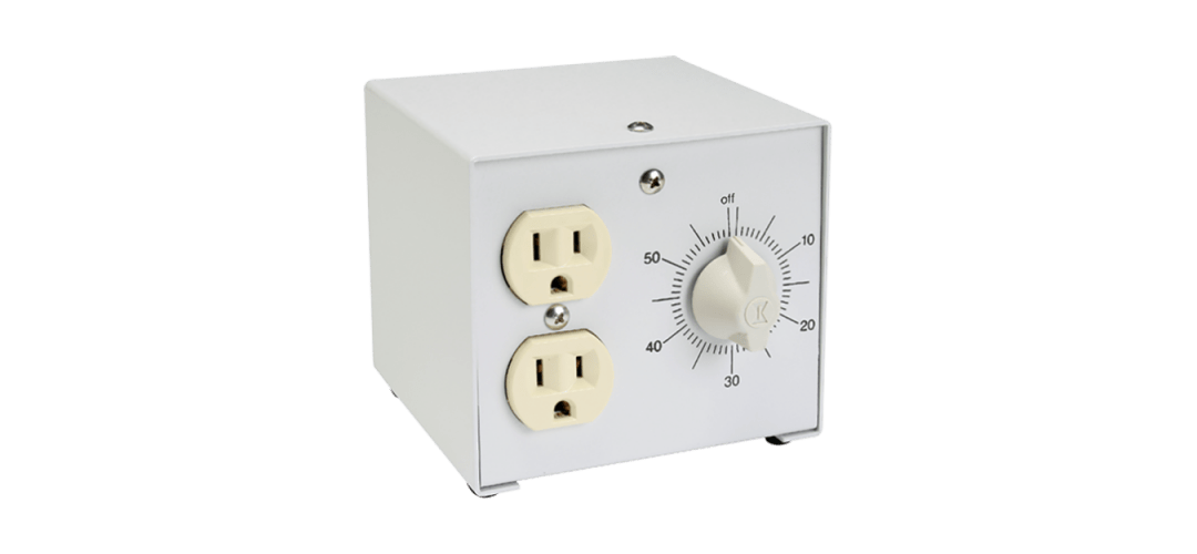 El temporizador portátil apaga automáticamente el aparato eléctrico en un tiempo establecido de hasta 60 minutos. Cuenta con receptáculo de CA de dos enchufes.